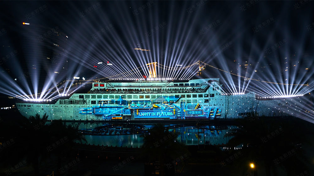 傳統的燈光秀基本都是以投影照射的建筑或山體等本身為載體做燈光秀,利用常規RGB燈具做點線面動態變化,用投影機、激光燈等工具對載體進行投射畫面,當然也可以利用無人機發光裝置在周圍進行布置配合表演,在配上特定的卡點音樂這就是傳統的燈光秀,必須要有固定的載體才能看到具體的畫面圖像。